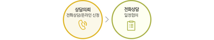전화문의 → 일정 협의, 신청서 접수 → 집단상담 진행